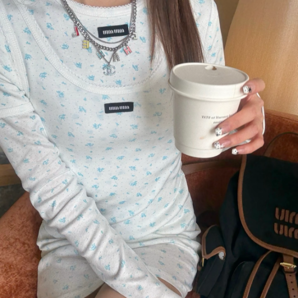 프라다 부케 프린트 립 조직 니트 탱크탑