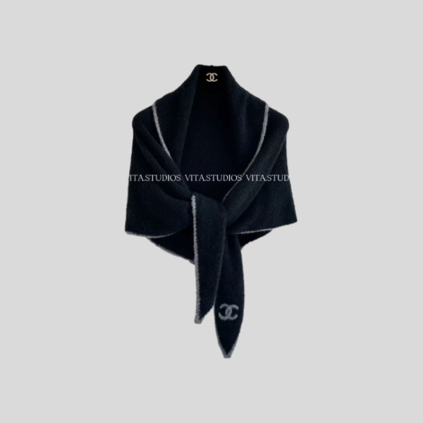 샤넬 클래식 실크 캐시미어 숄 블랙