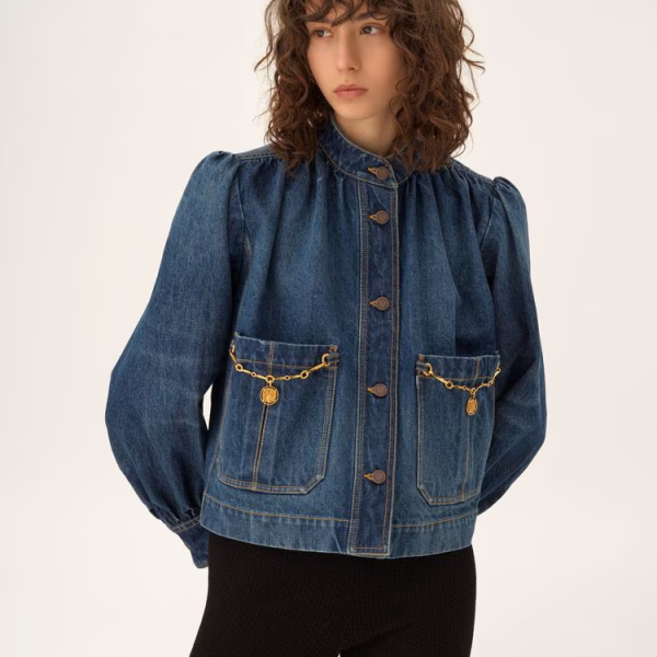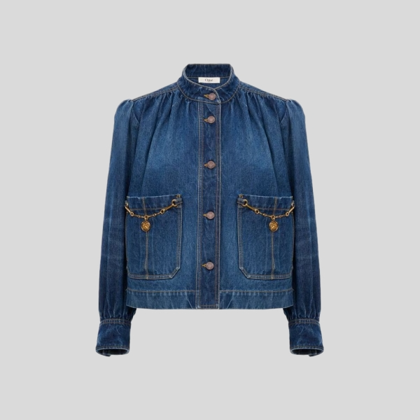 끌로에 데님 하이넥 개더드 재킷