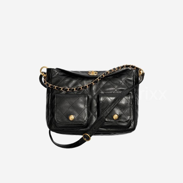 샤넬 19 플랩 카드 홀더 블랙