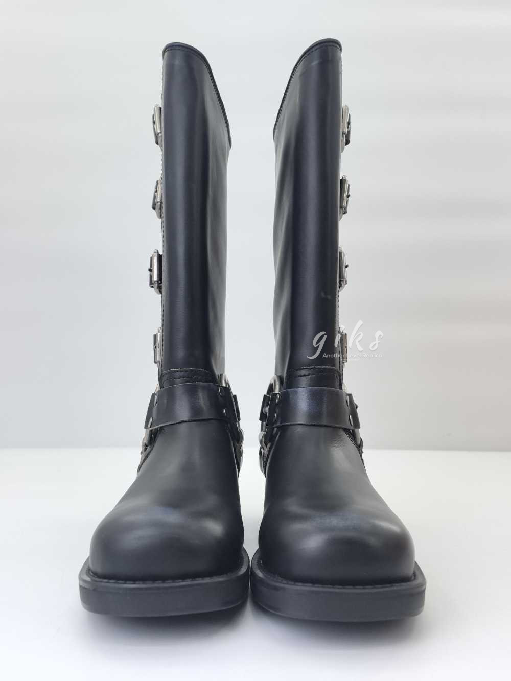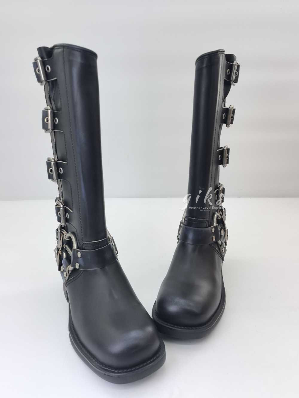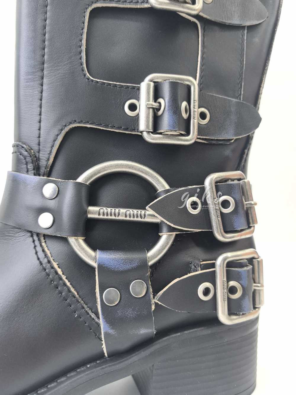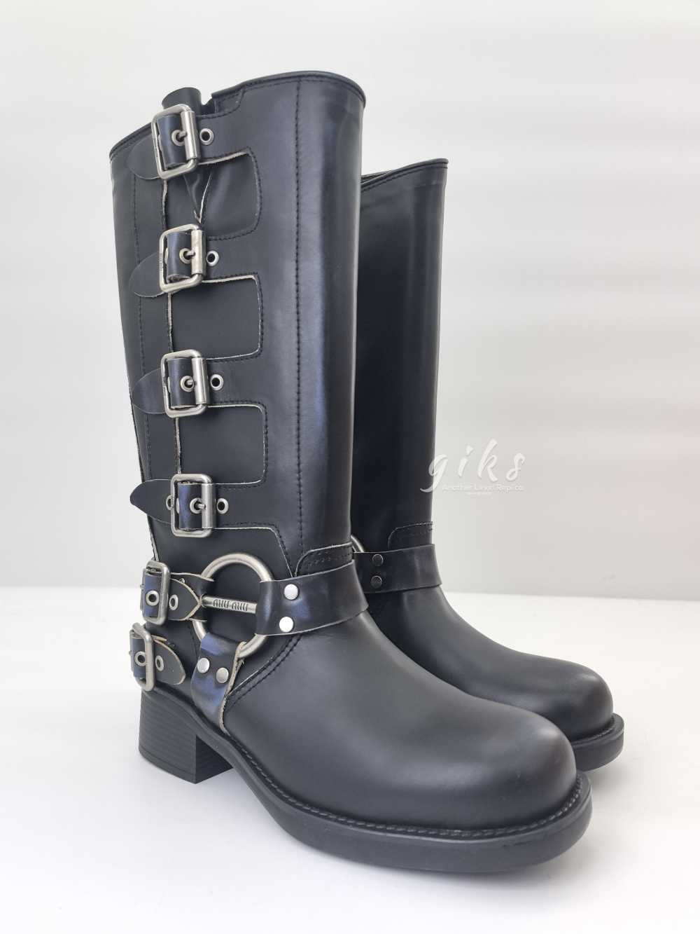 미우미우 가죽 바이커 롱 부츠 블랙