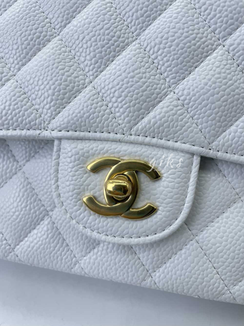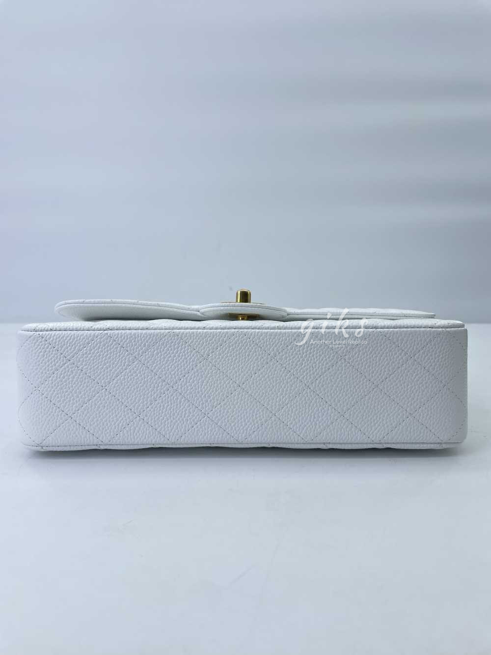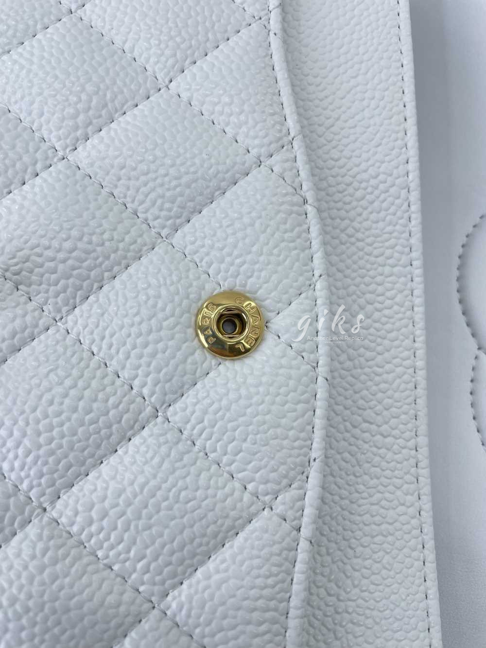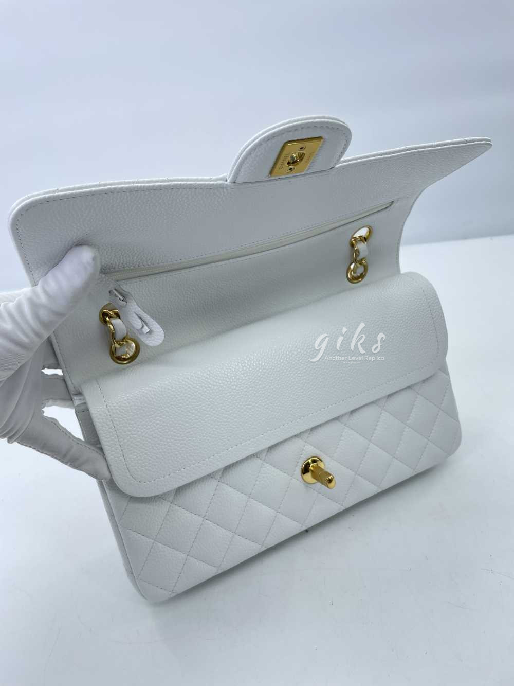샤넬 클래식 미디움 카프스킨 화이트 골드