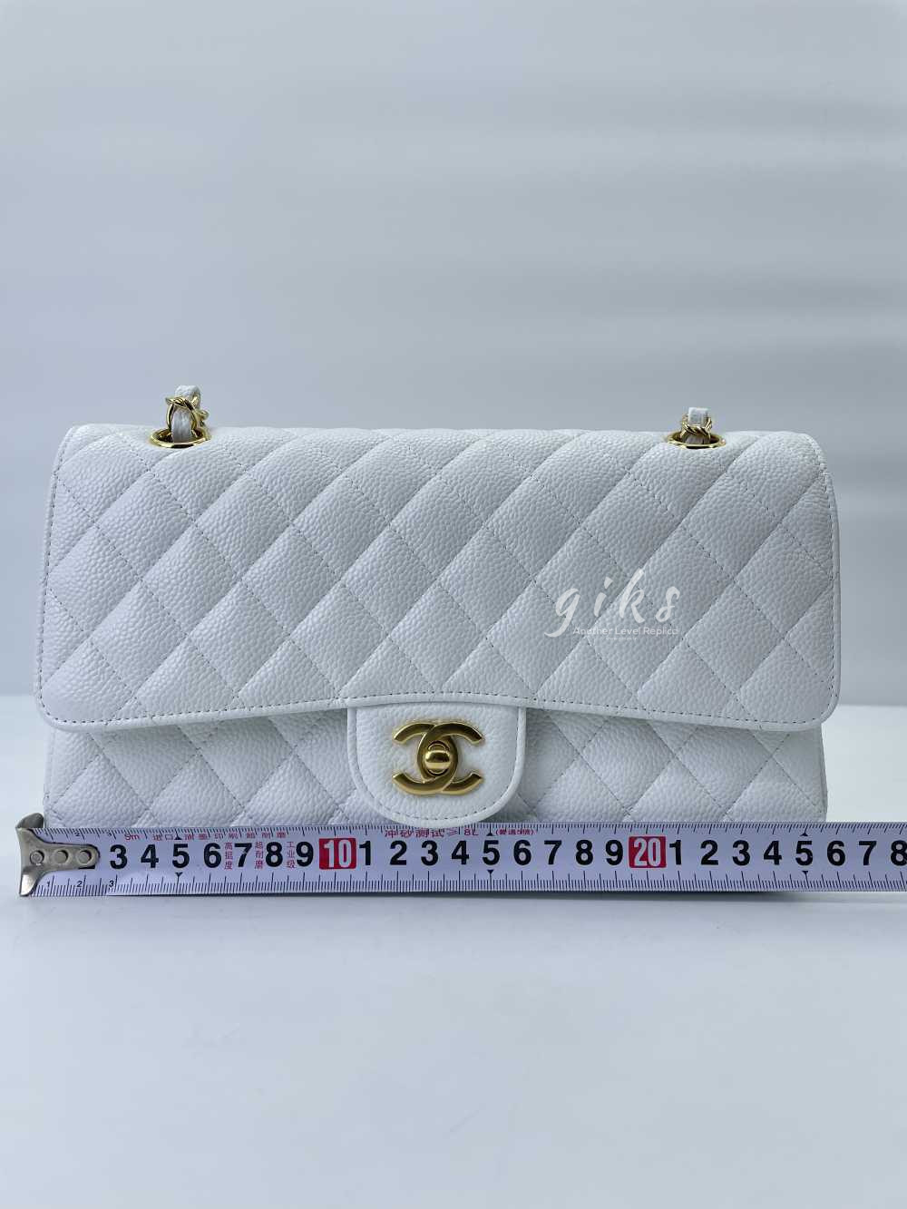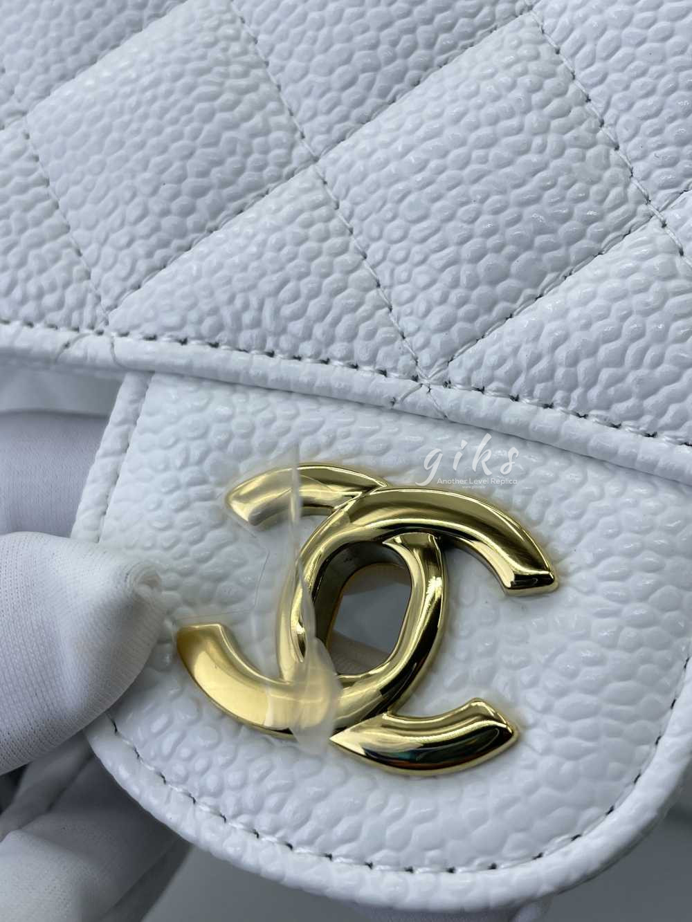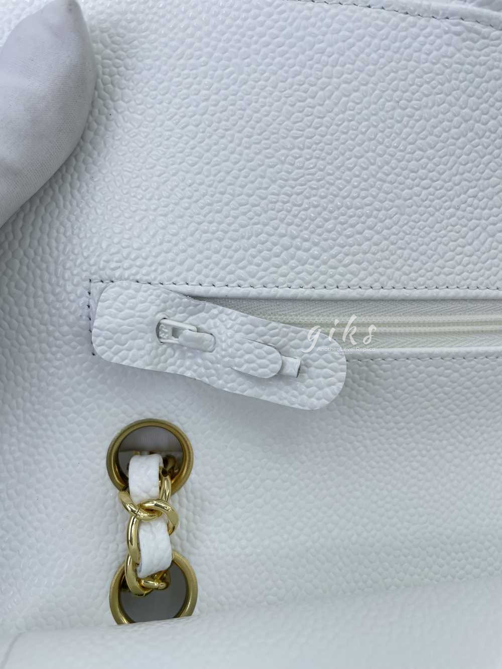 샤넬 클래식 미디움 카프스킨 화이트 골드