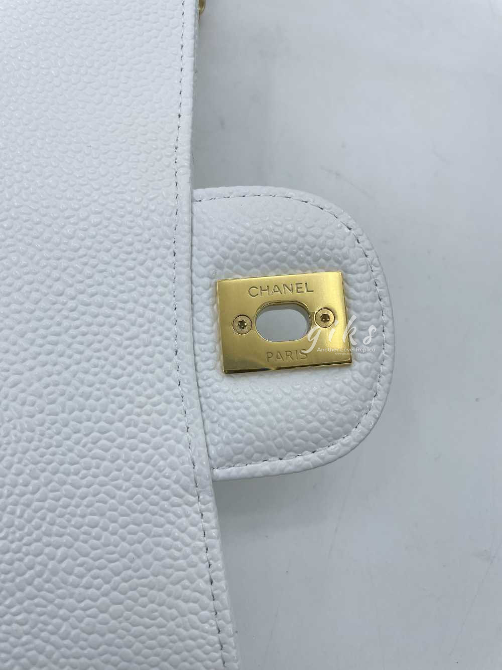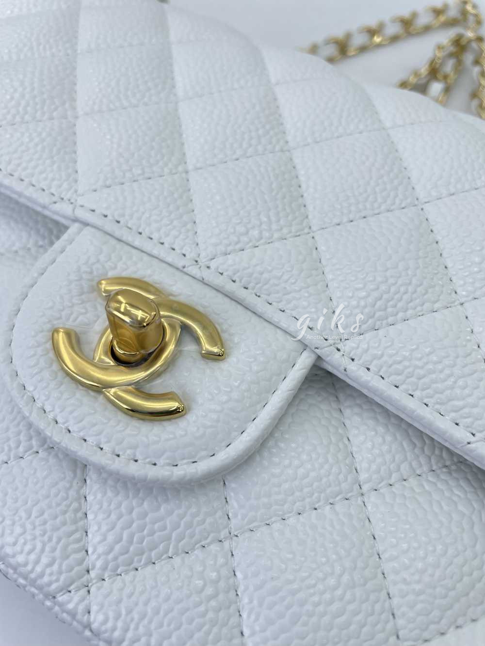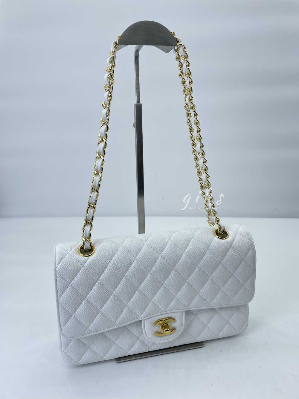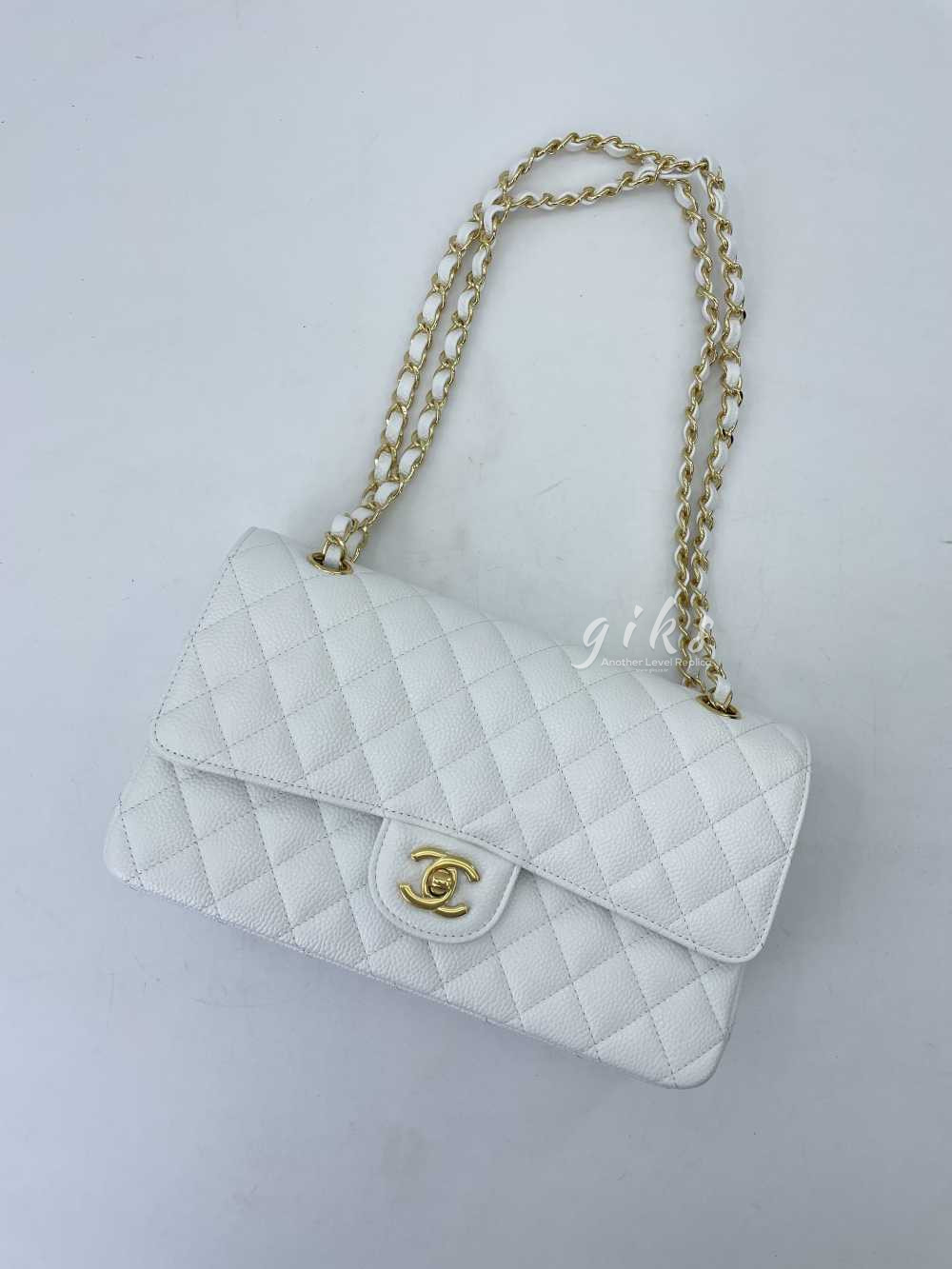 샤넬 클래식 미디움 카프스킨 화이트 골드