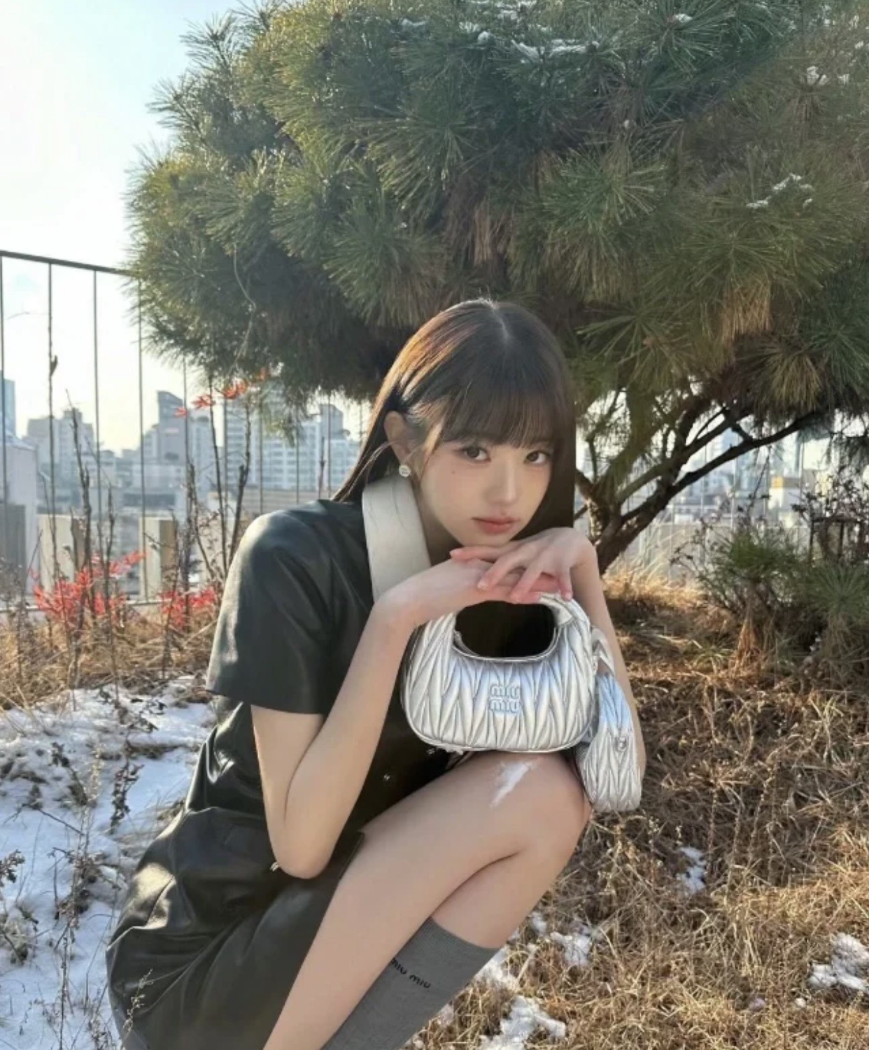 미우미우 호보 실버 미니백