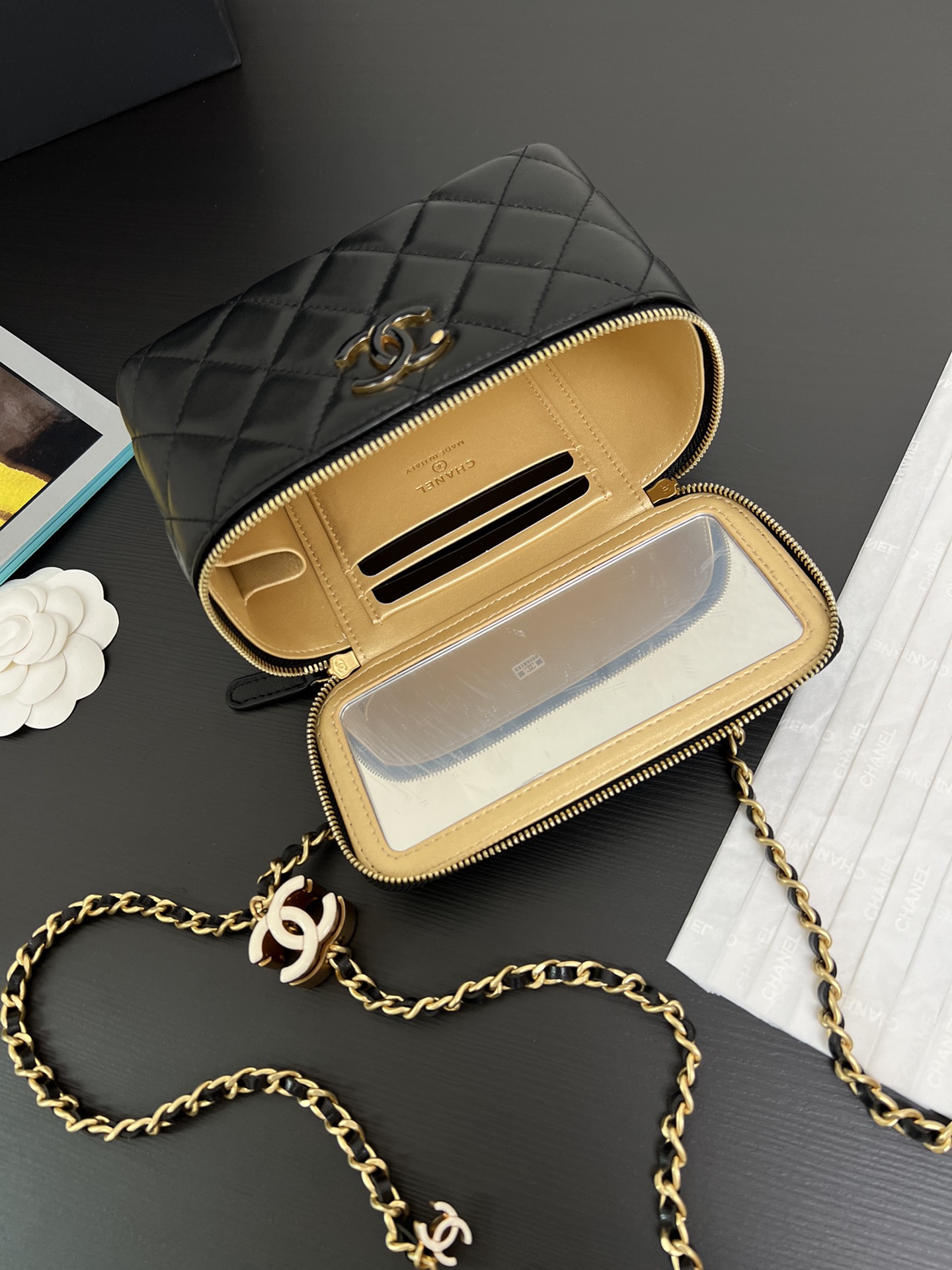 샤넬 베니티 정사각 화이트 골드