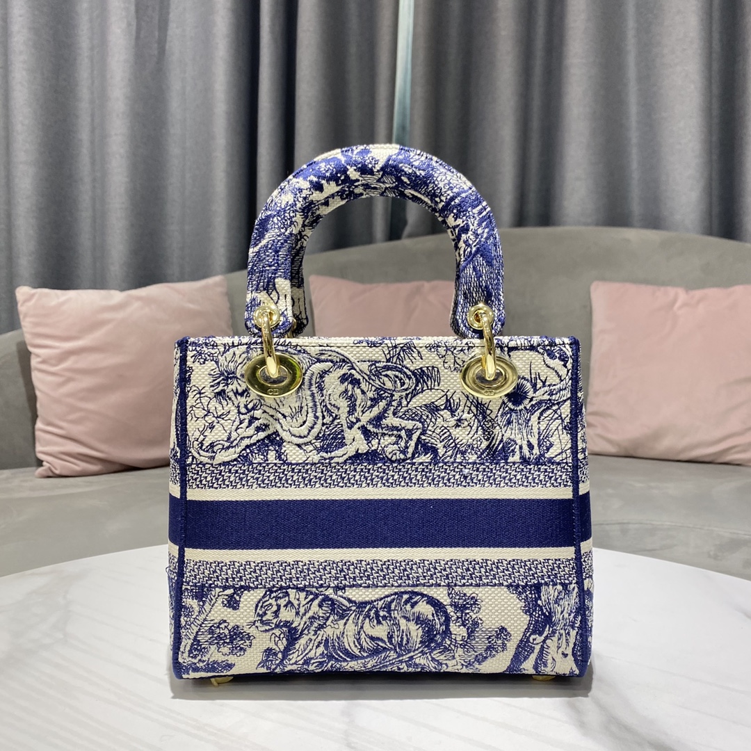 디올 레이디 D-Lite 미디엄 백 블루 Toile de Jouy 자수