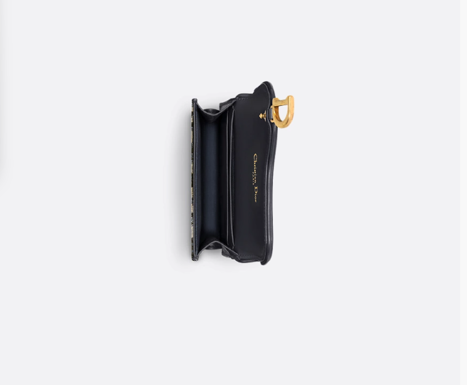 디올 오블리크 새들 플랩 카드 지갑 블랙