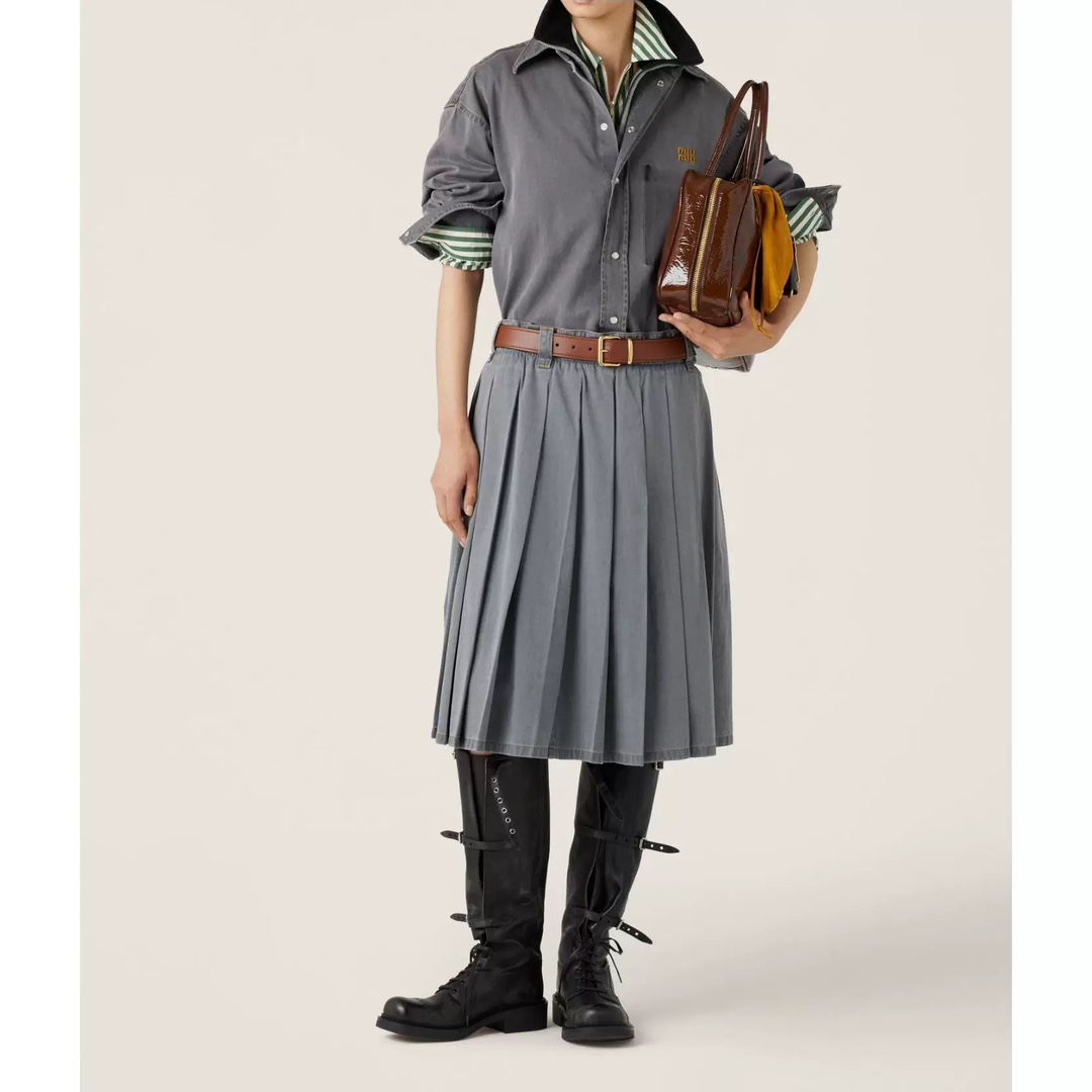 미우미우 워시드 소프트 데님 셔츠 스커트 (그레이)