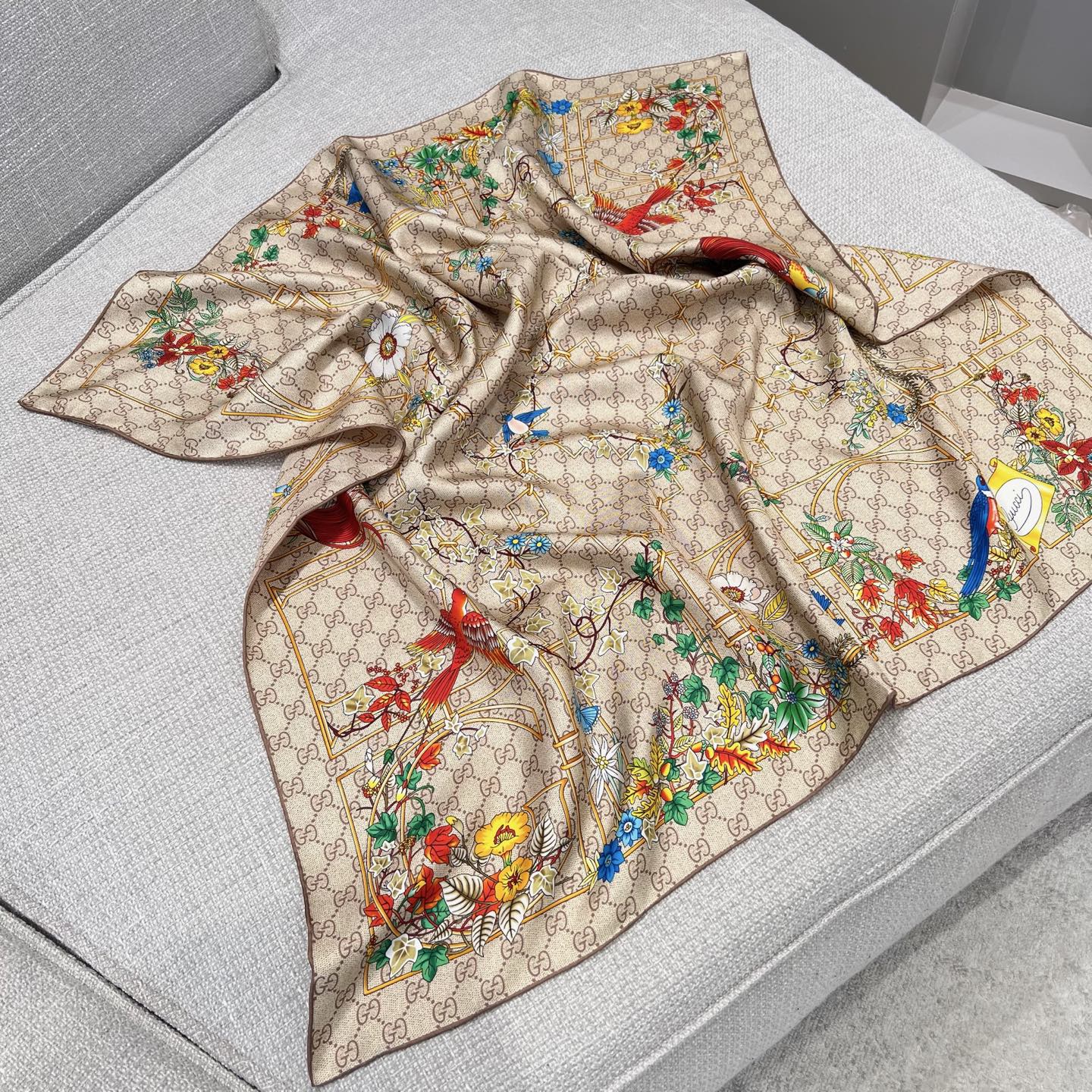 구찌 프린트 실크 트윌 까레