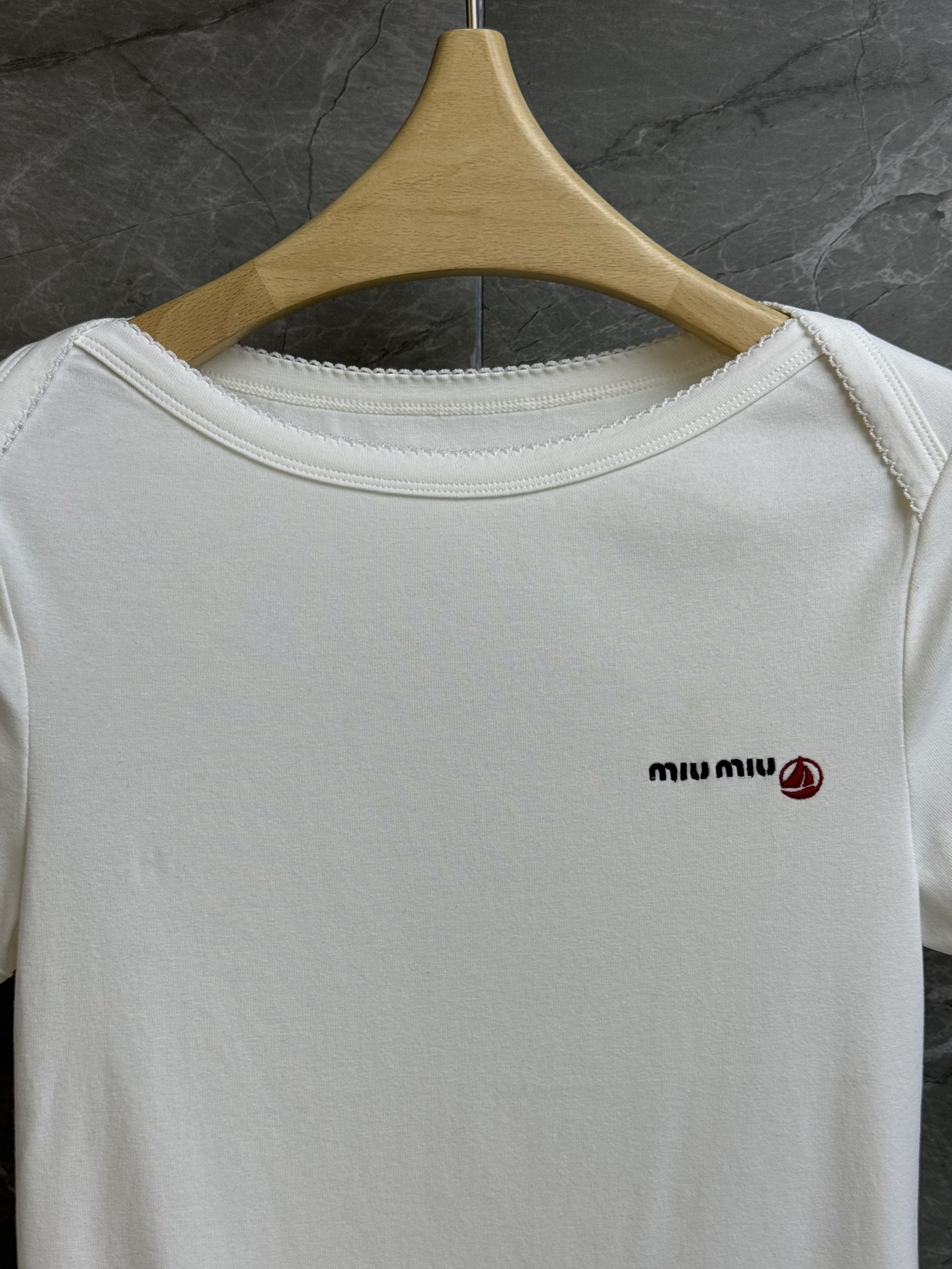 미우미우 자수 로고 티셔츠