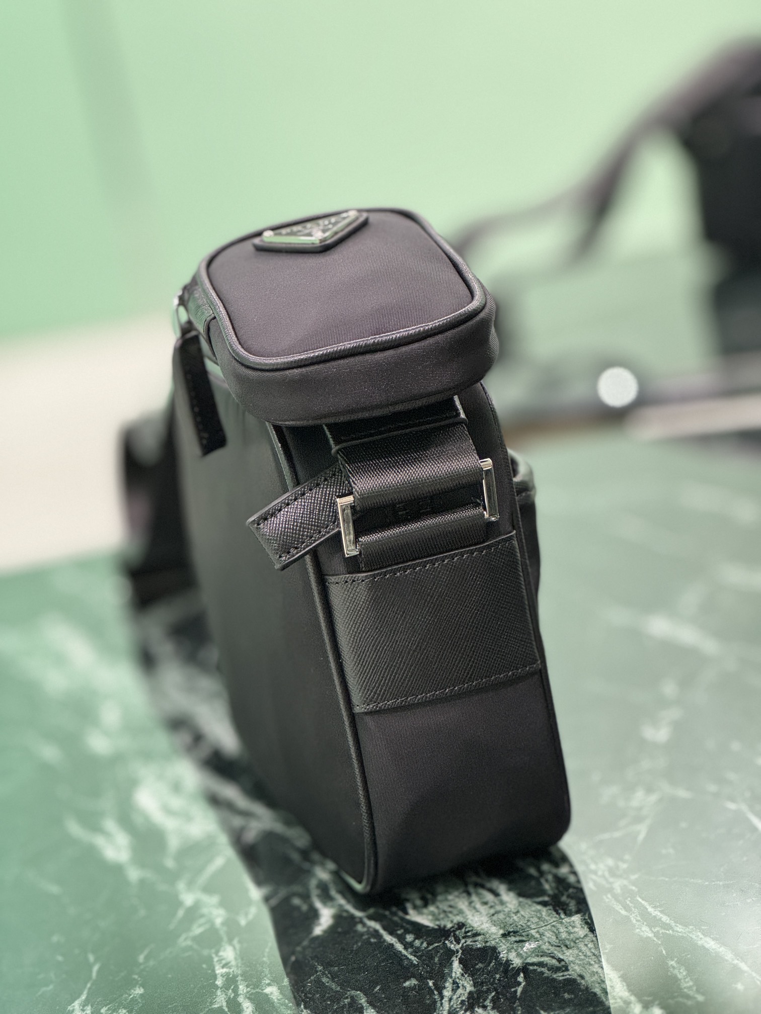 프라다 리나일론 가죽 슬링백