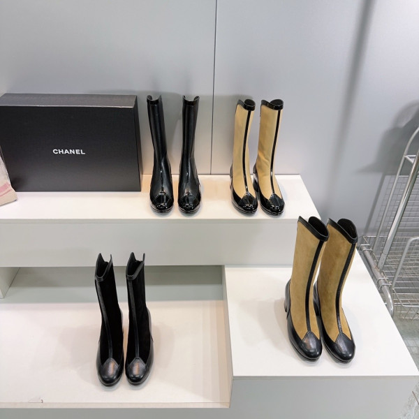 샤* 스웨이드 배색 통굽 라이더 부츠 > CHANEL
