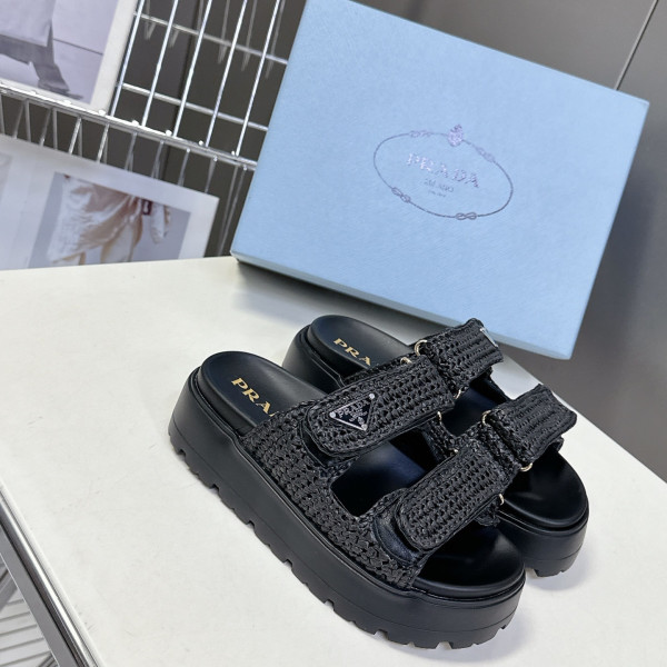 프*다 봄여름 신상 삼각로고 통굽 슬리퍼 > PRADA