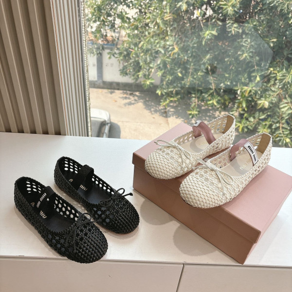 미*미우 리본 장식 새틴 발레 플랫 슈즈