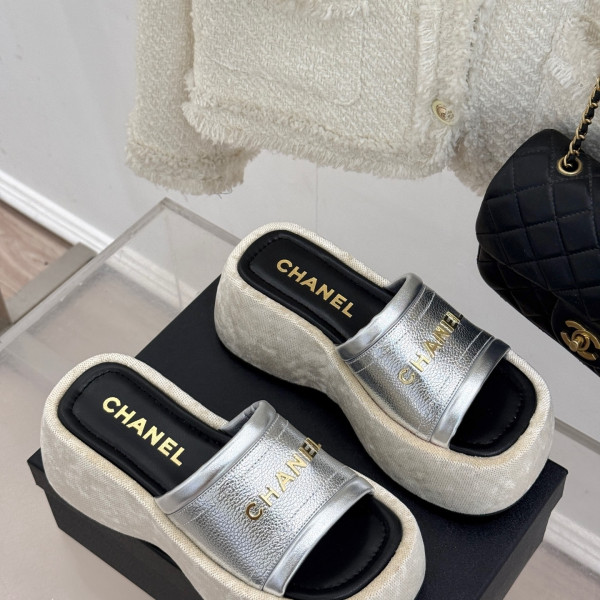 샤* 25C 신상품 레터링 통굽 슬리퍼 > CHANEL