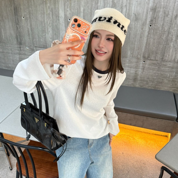 프라다 25Ss 이른 봄 신상 멜란지 스트라이프 터틀넥 > 긴팔/셔츠