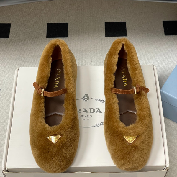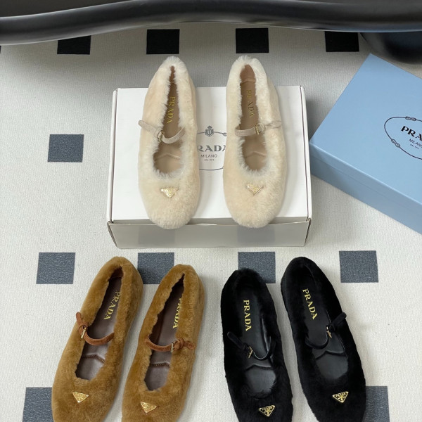 프*다 25S 신상 울 발레 플랫 퍼 메리제인 플랫 > PRADA