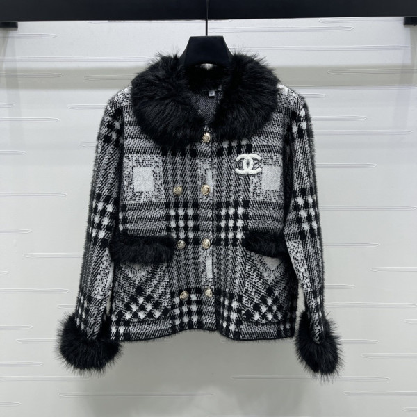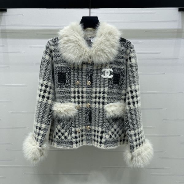 샤* 26 신상 보아털 칼라 체크 니트 코트 > 자켓