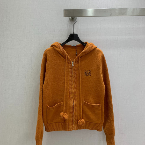 로*베 아나그램 자수 울 후드 집업 가디건
