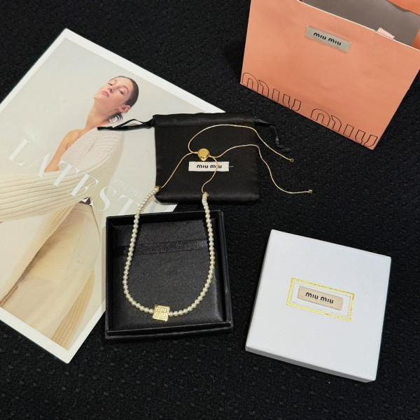 미*미우 스퀘어 이니셜 진주 목걸이