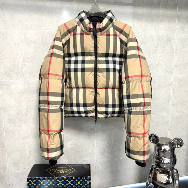 버*리 체크 여성 숏패딩