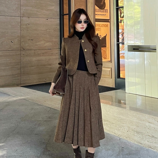 샤* 26Ss 라운드넥 트위드 코트