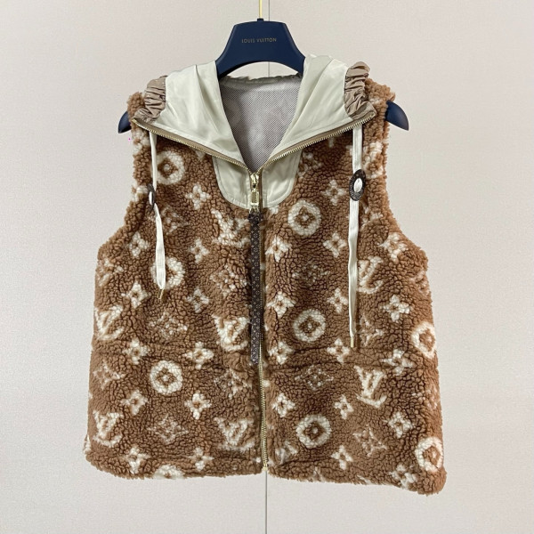 루*비통 신상 후드 패치워크 램스울 조끼