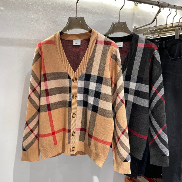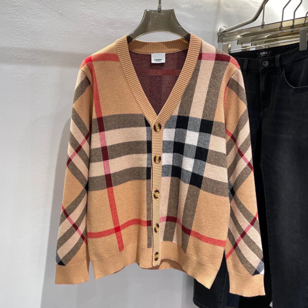 버*리 체크 울 블렌드 가디건