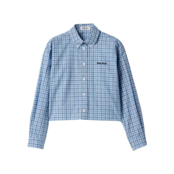 미우미우 체크 포플린 셔츠 셀레스트