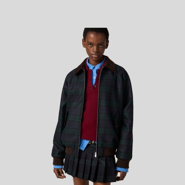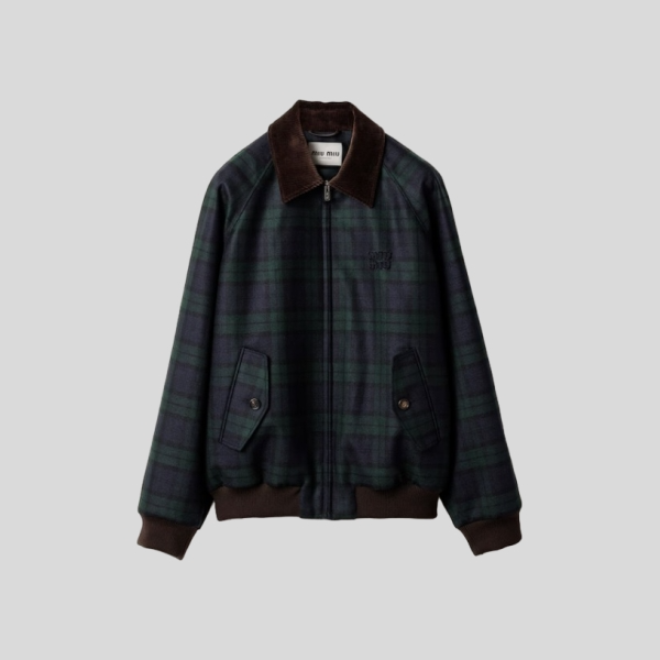 미우미우 체크 트윌 블루종 자켓, 스커트