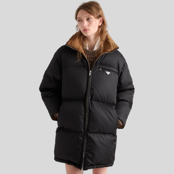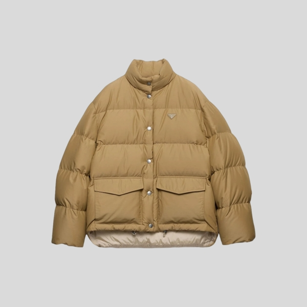 프라다 미디움 웨이트 테크니컬 패브릭 다운 자켓 코르크 베이지