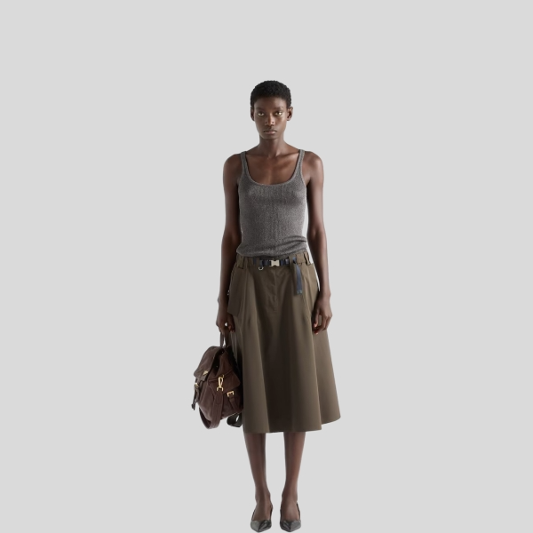 프라다 플리츠 포플린 러쉬 스티치 스커트