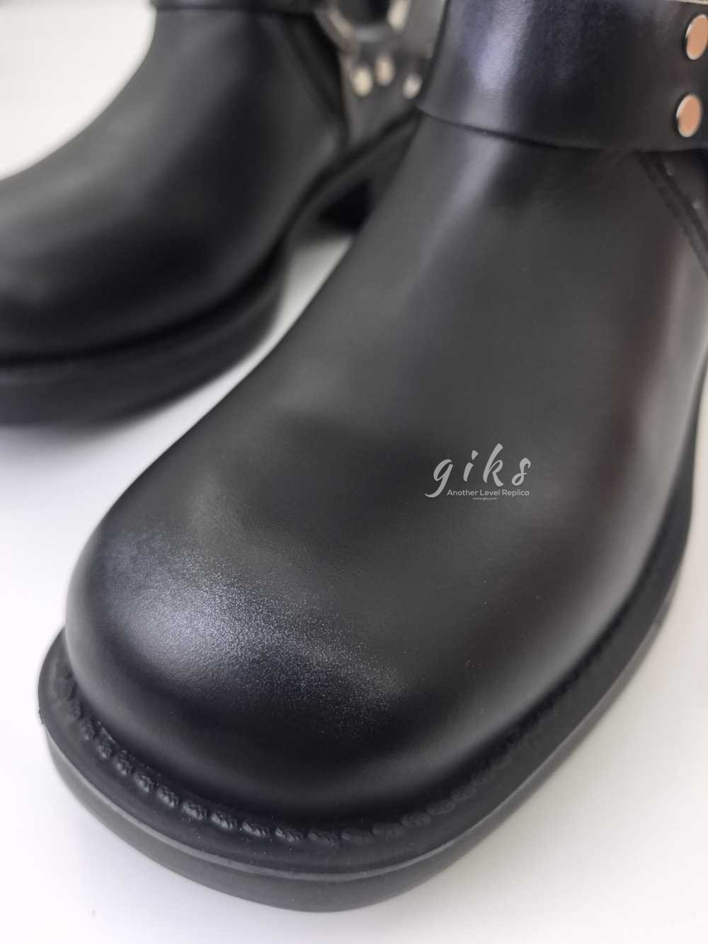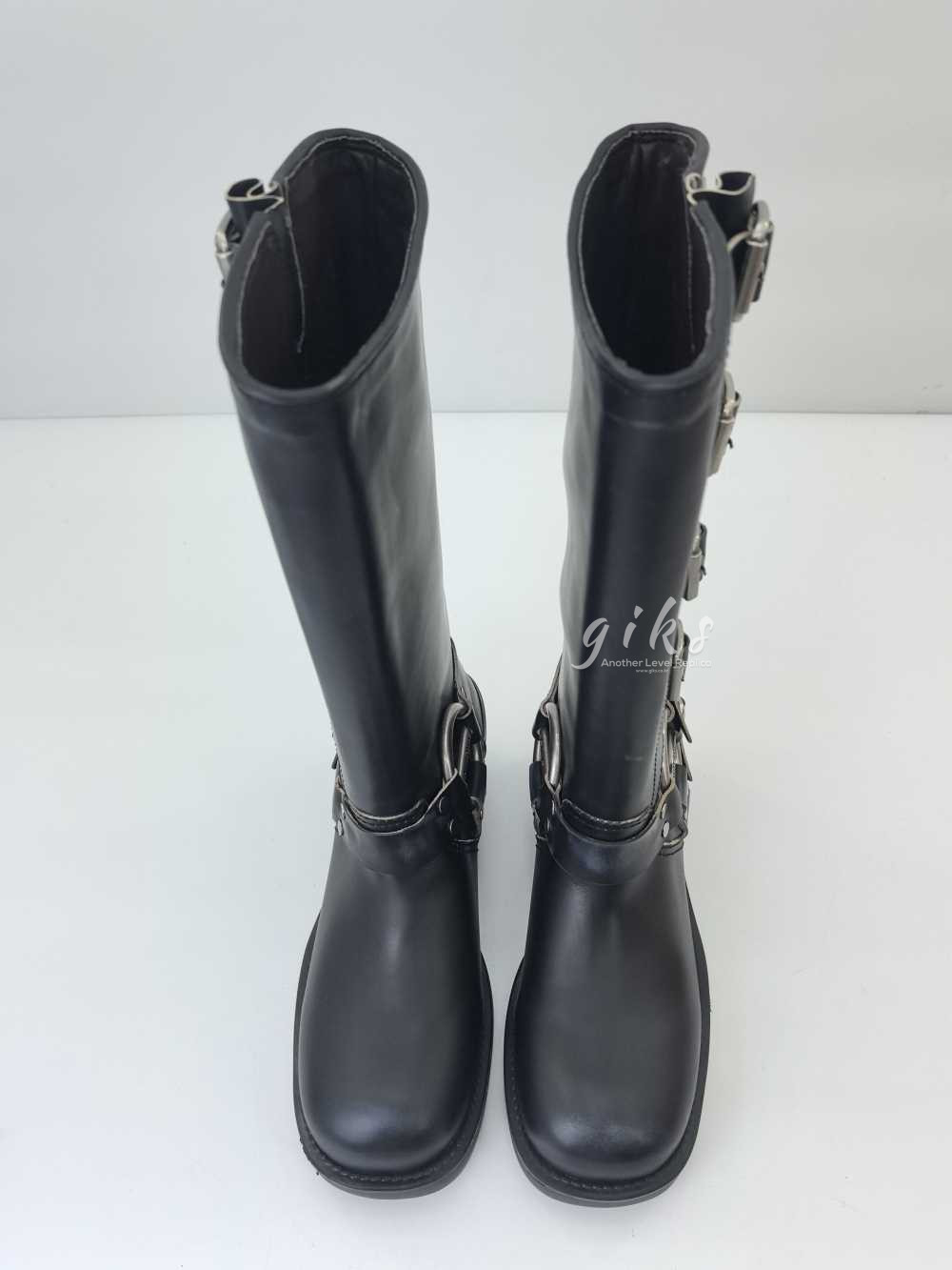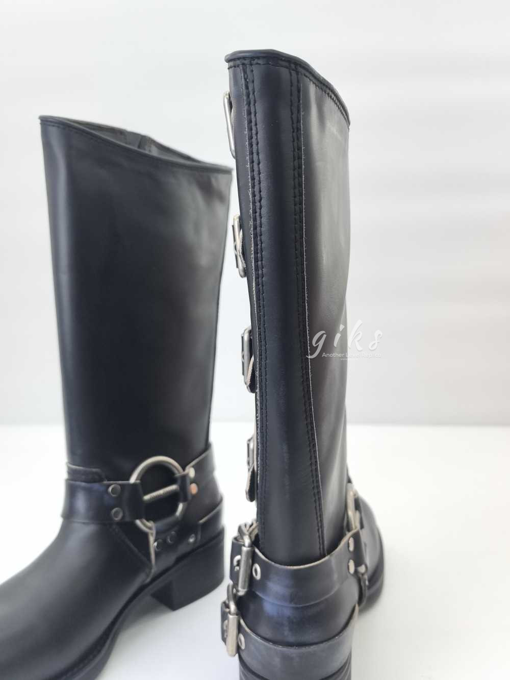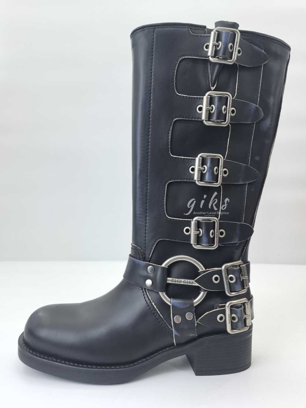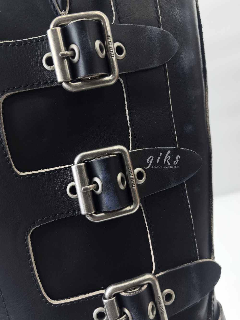 미우미우 가죽 바이커 롱 부츠 블랙