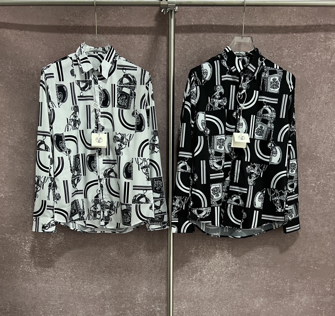 에르메스 긴팔 셔츠 (화이트,블랙)
