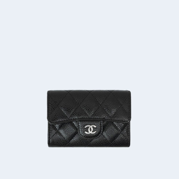 샤넬 클래식 캐비어 카드 홀더 블랙 실버
