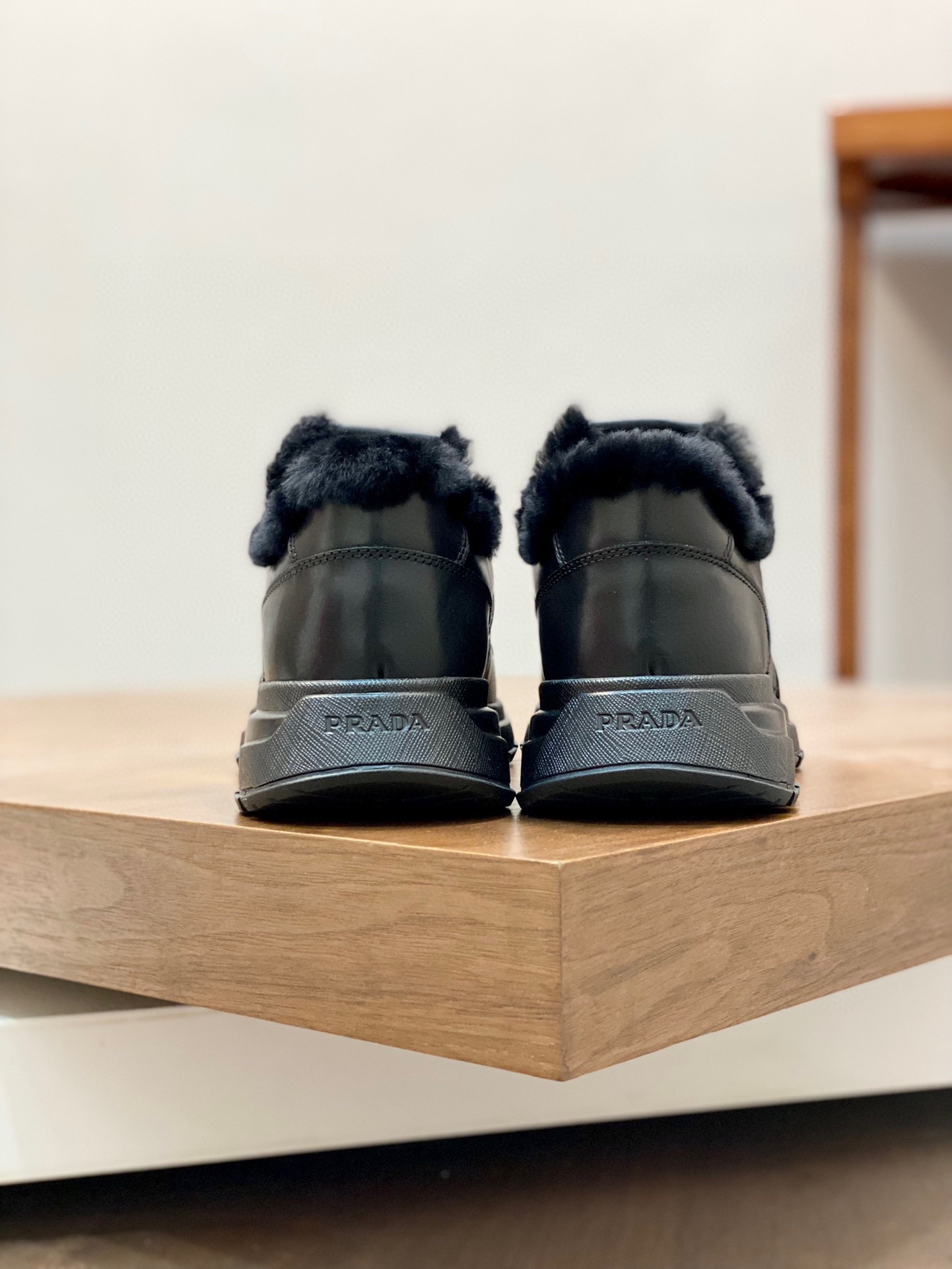 프라다 시어링 부티 블랙