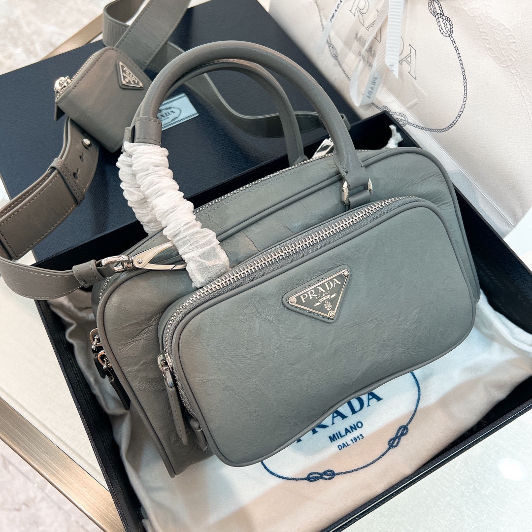 프라다 엔틱 나파 레더 탑핸들백 그레이