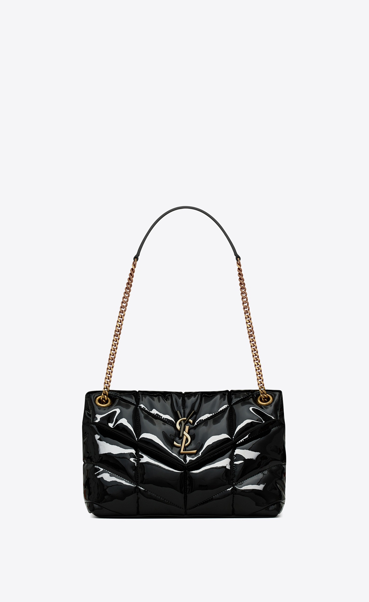 생로랑 모노그램 PUFFER 샤이니 레더 숄더백 블랙 골드 > SAINT LAURENT