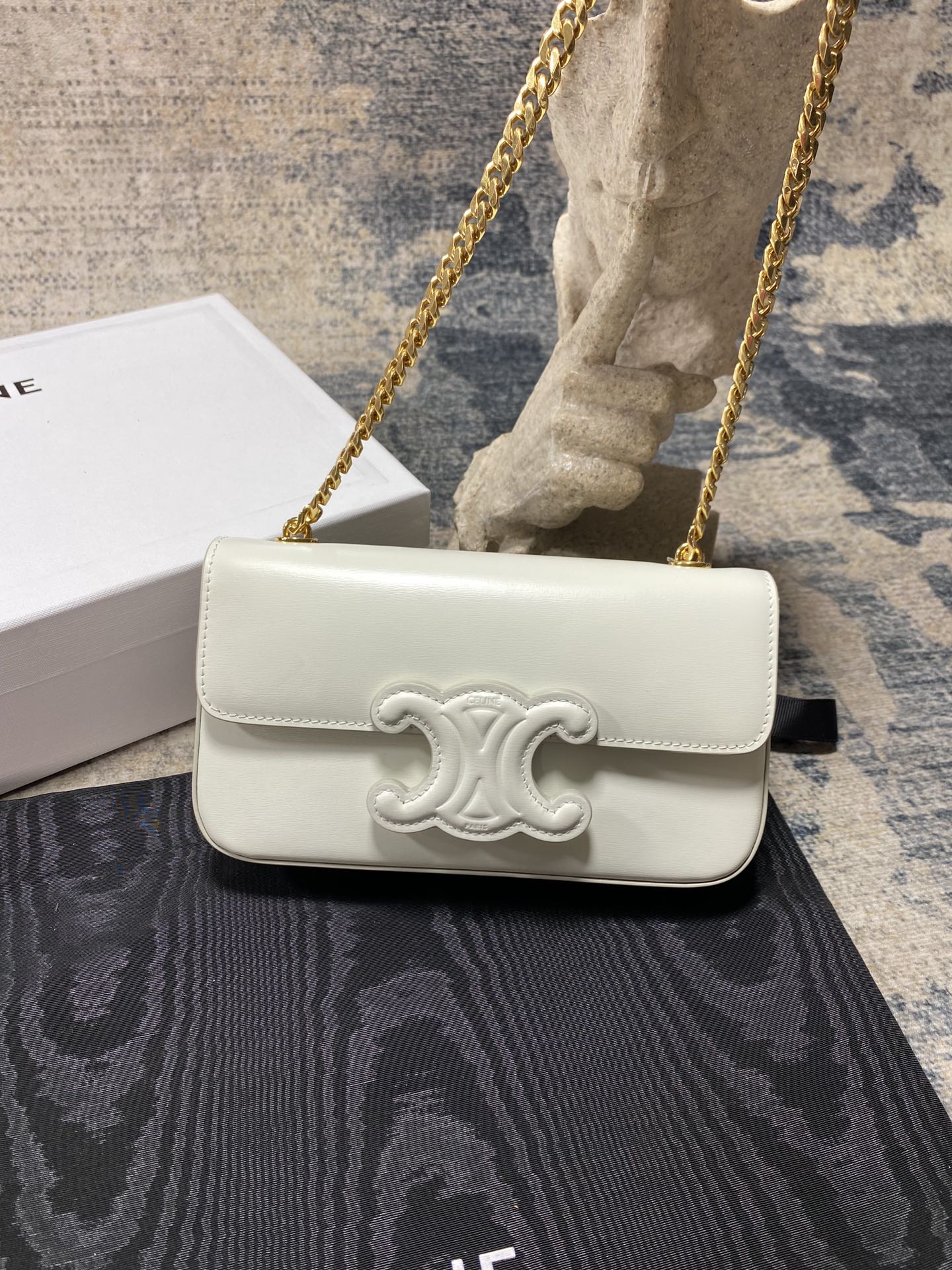셀린느 트리옹페 퀴르 체인 숄더백 화이트