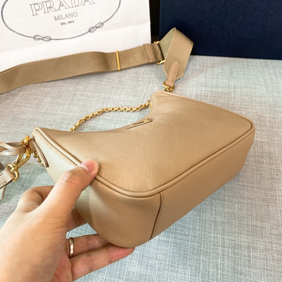 프라다 리에디션 2005 사피아노 레더 숄더백 베이지