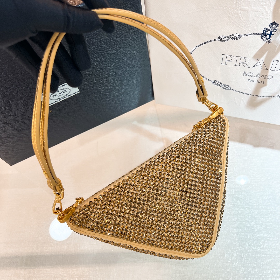 프라다 크리스탈 스터드 사틴 파우치 골드