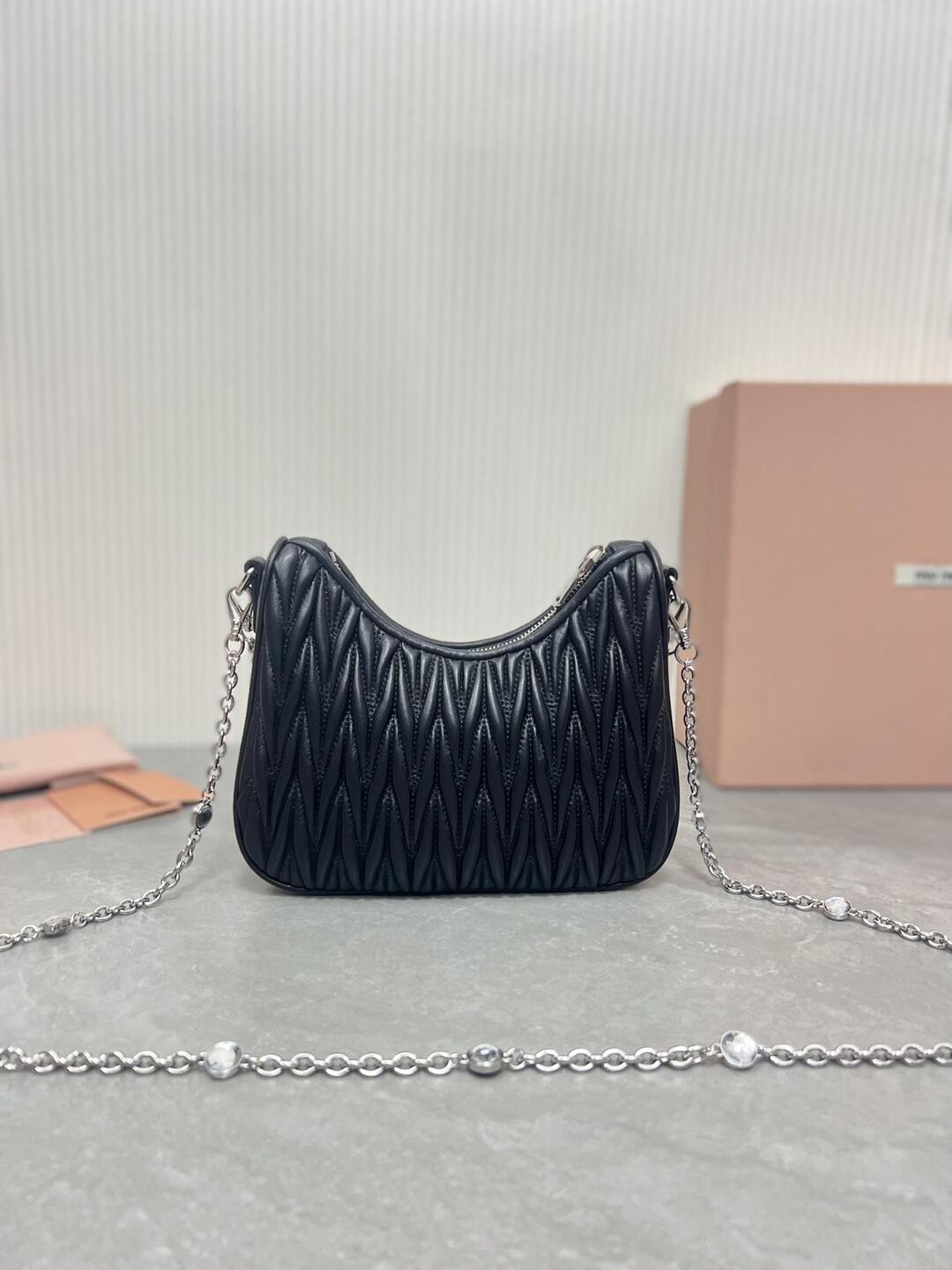 미우미우 마테라쎄 나파 가죽 숄더백 크리스탈 블랙