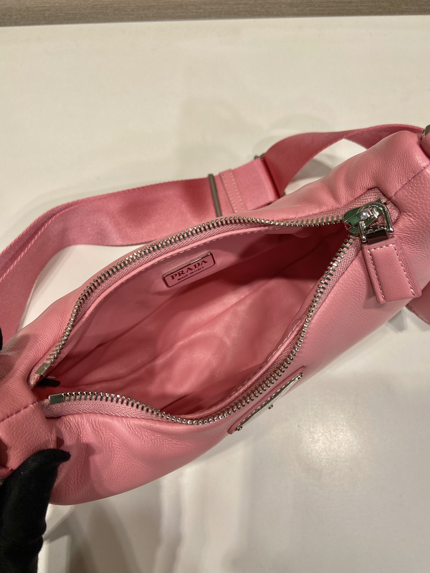 프라다 나파 가죽 리에디션 숄더백 핑크