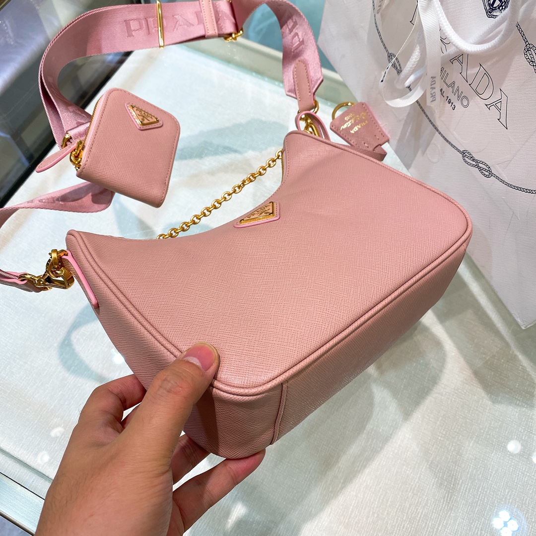 프라다 리에디션 2005 사피아노 레더 숄더백 핑크