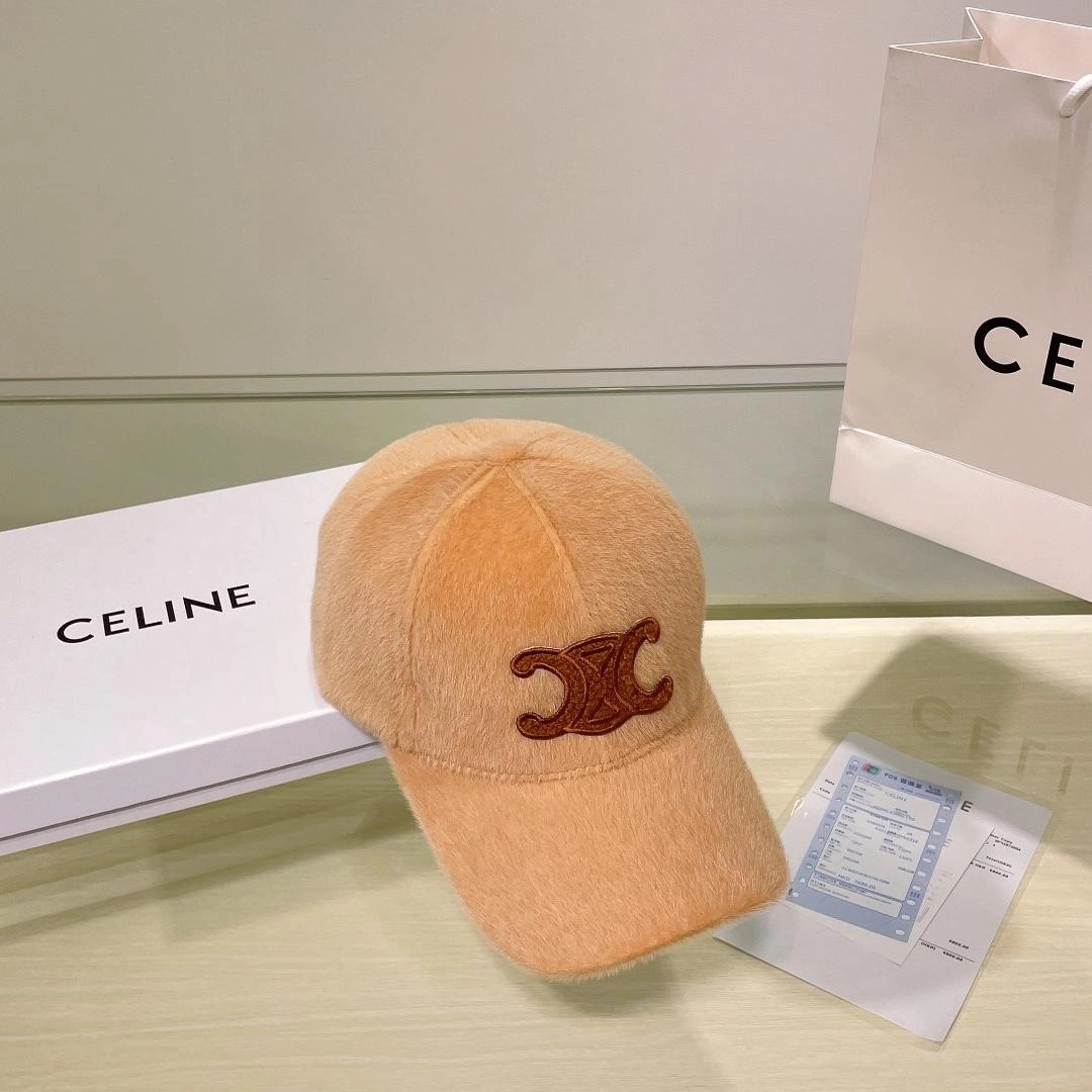 셀린느 트리옹프 베이지 퍼 베이스볼 캡