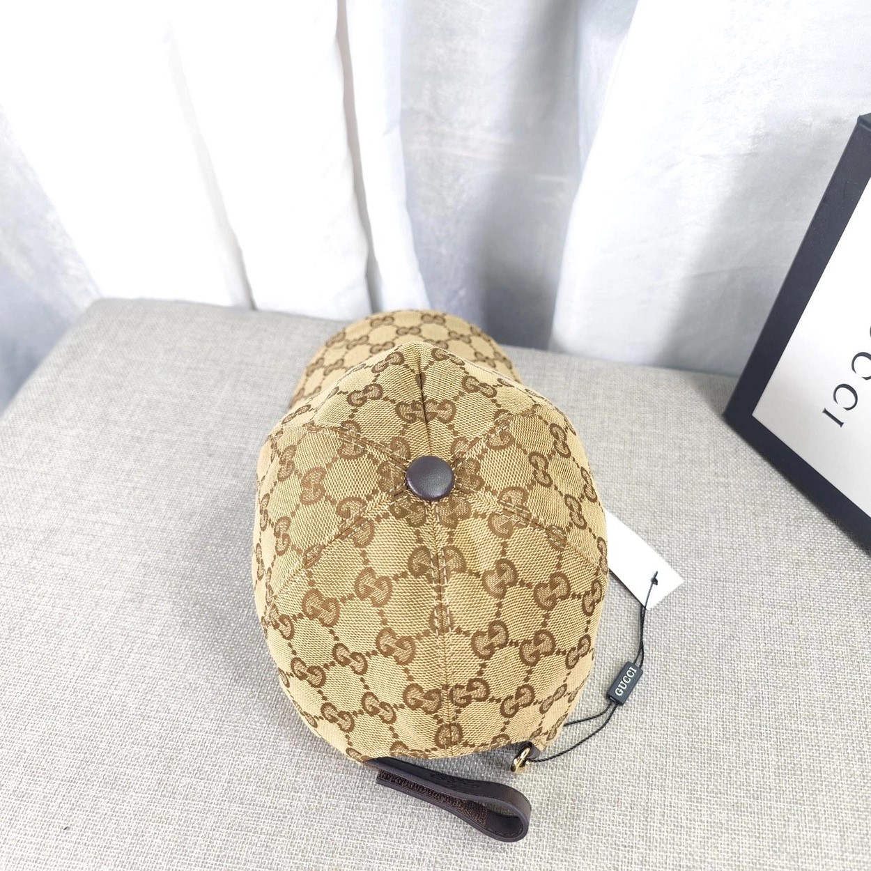 구찌 GG 자카드 로고 패치 베이지 베이스볼 캡