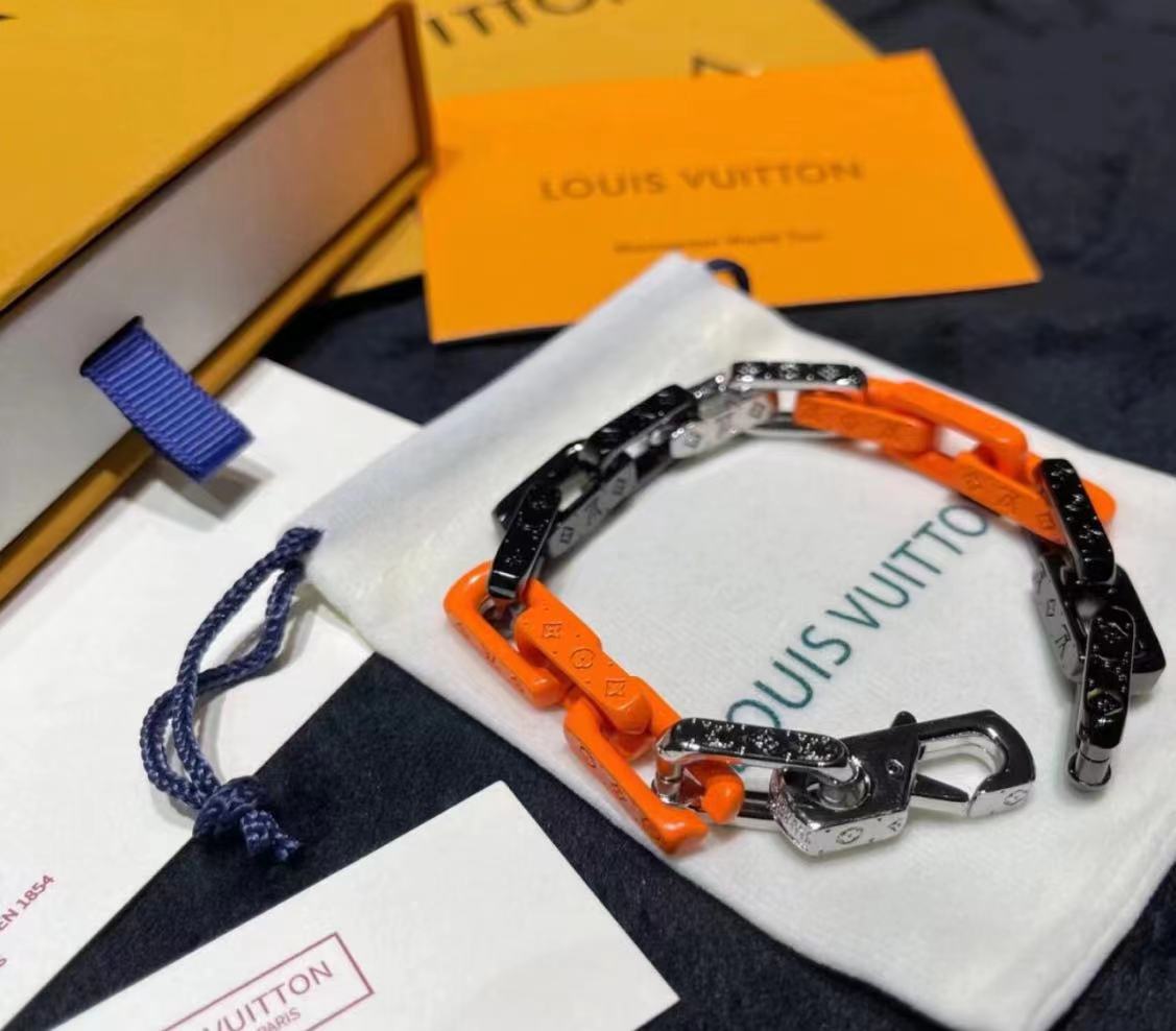 루이비통 모노그램 체인 브레이슬릿 실버 오렌지 블랙