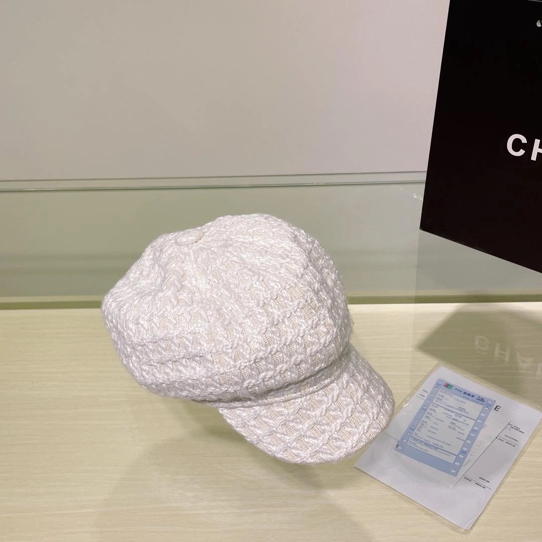 샤넬 트위트 화이트 비니 캡