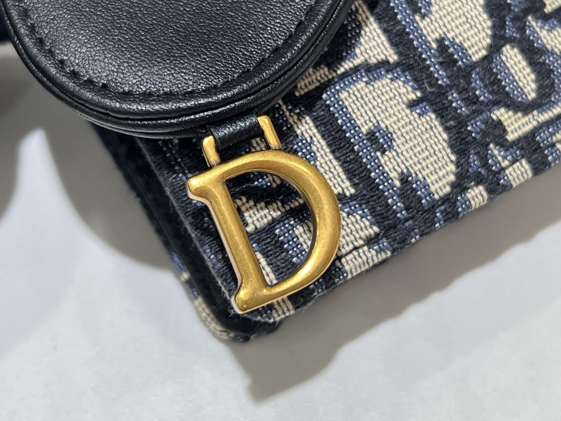 디올 오블리크 새들 플랩 카드 지갑 블랙
